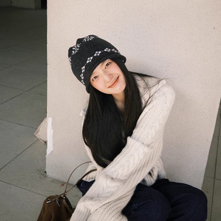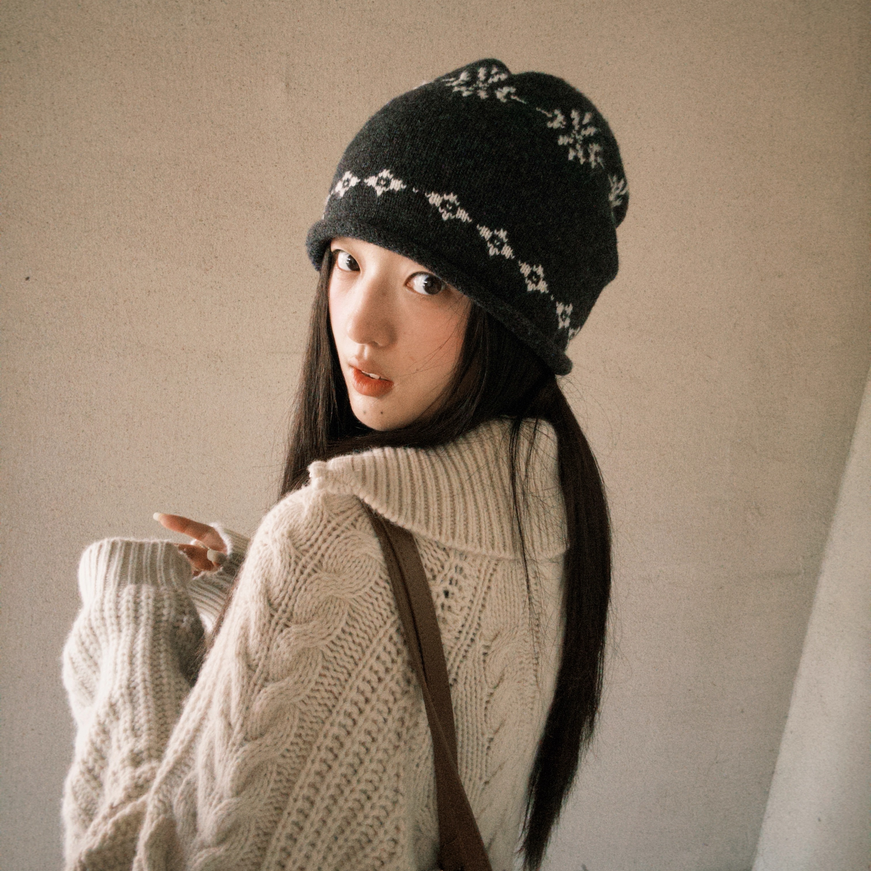 韩版黑色提花针织帽女秋冬季包头时尚显脸小毛线帽大头围堆堆帽子