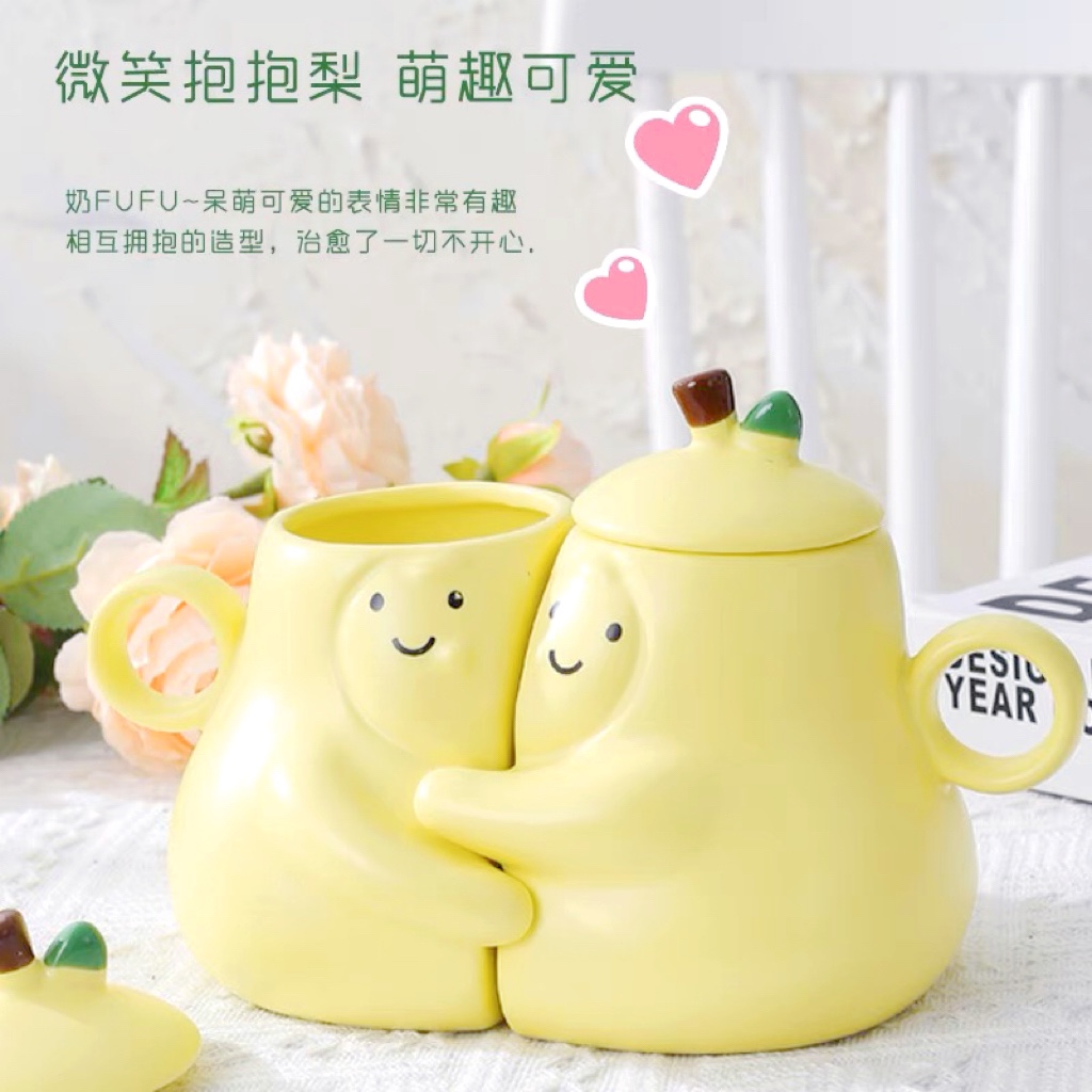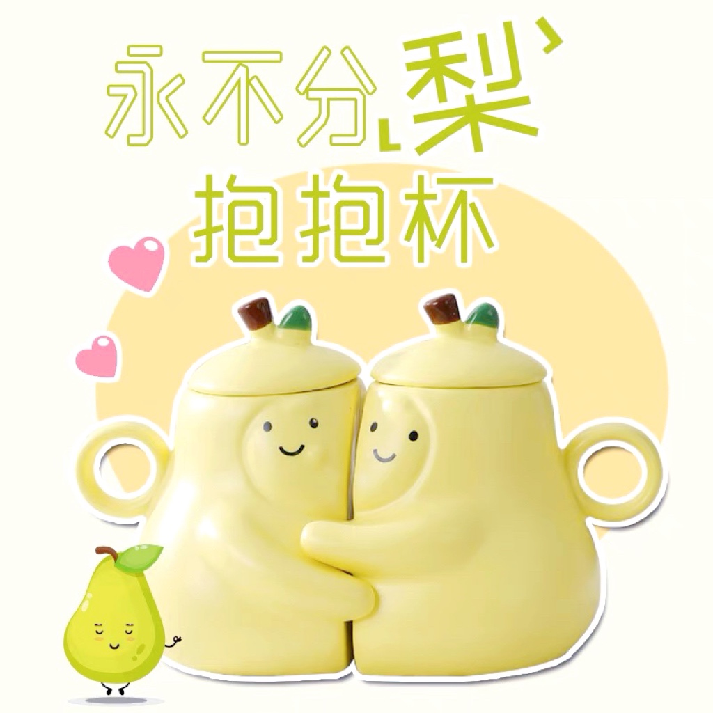 永不分梨抱抱梨情侣对杯陶瓷马克杯可爱搞怪送女友男的礼物水杯子
