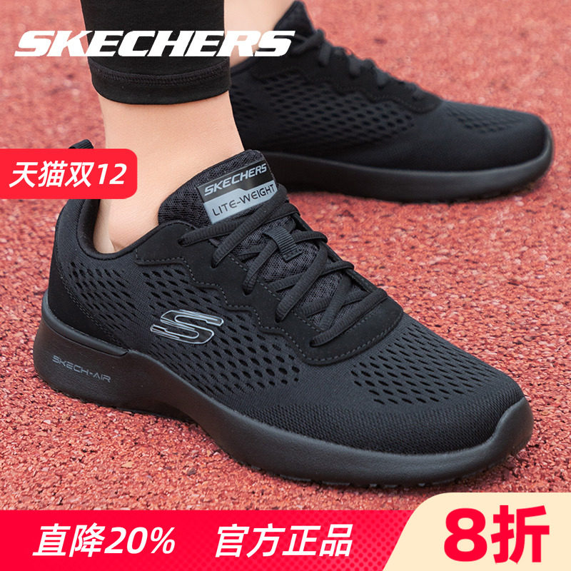 Skechers斯凯奇男鞋运动鞋冬季大网眼全黑色网面透气洞洞跑步鞋男