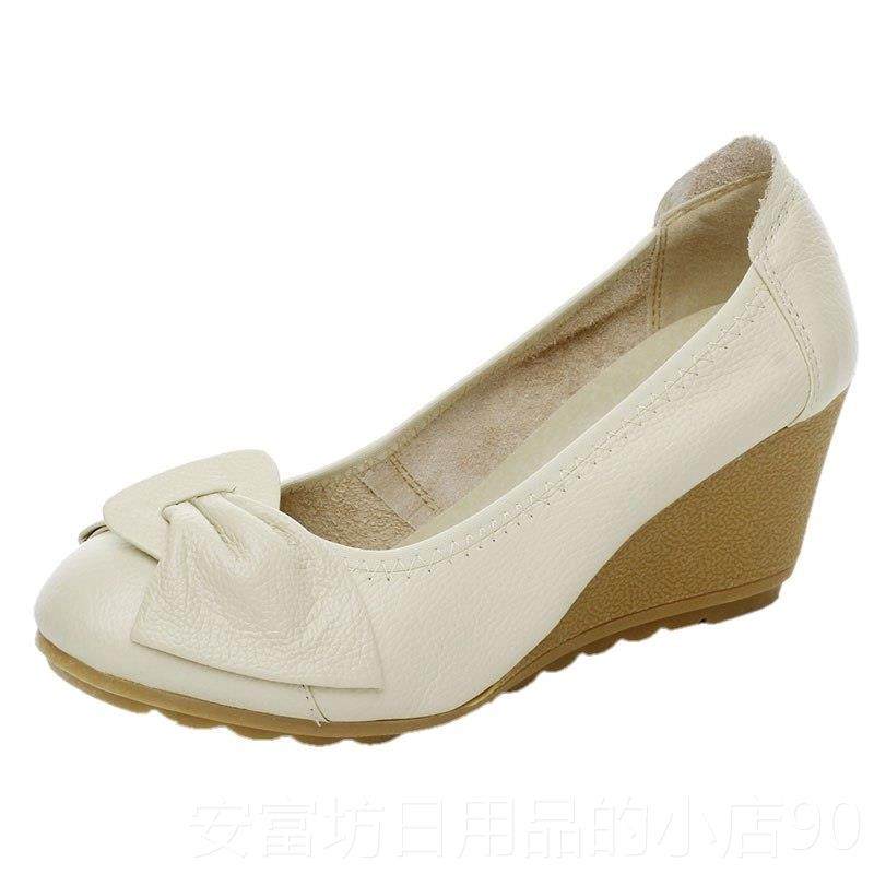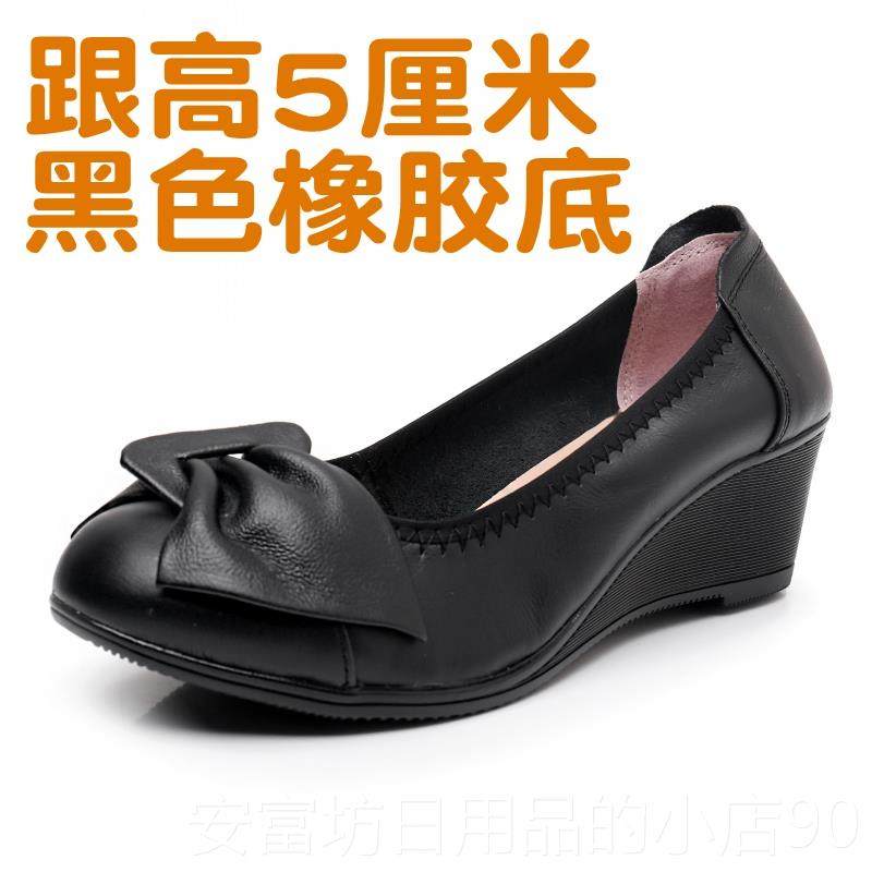 正品春牛秋季真皮筋上底坡跟女鞋高跟妈鞋花朵浅口甜美女单鞋班鞋
