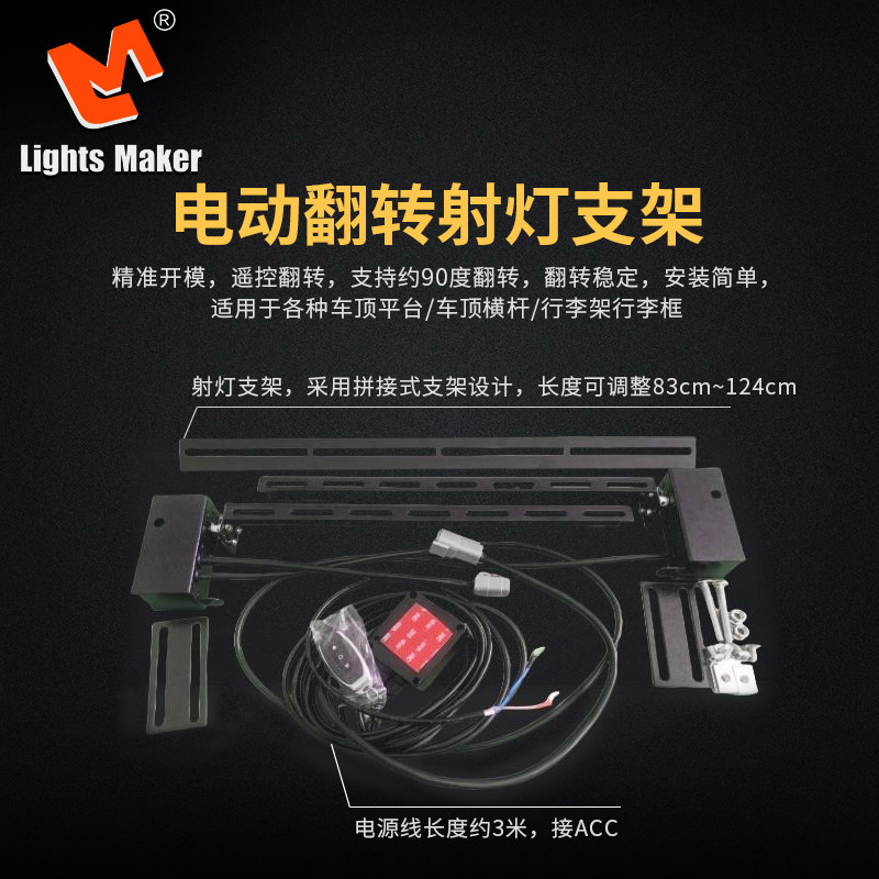 历明SUV越野车车顶平台电动翻转射灯支架无线遥控隐藏式安装射灯