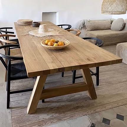 原木全实木长桌餐桌椅组合美式乡村家用复古茶桌别墅民宿大型木桌