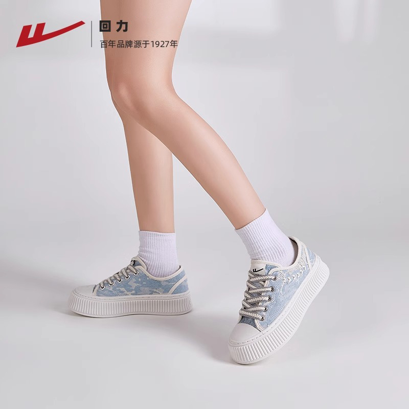 回力女鞋帆布鞋2025春季新款小众百搭厚底休闲板鞋松糕饼干鞋子女