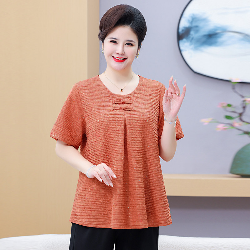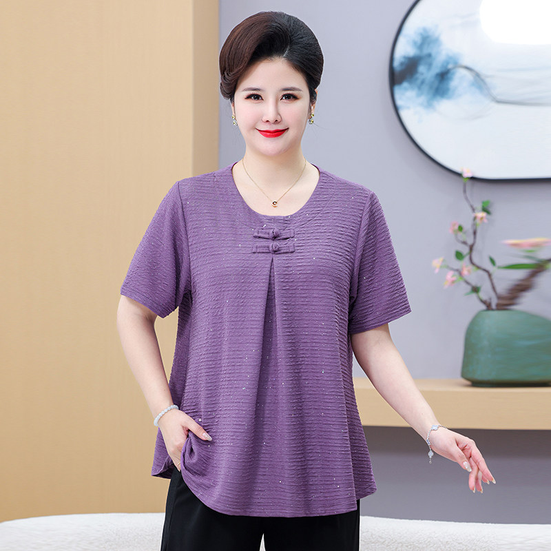 2025新款中老年女胖妈妈夏装加肥加大码短袖上衣T恤老人特体套装