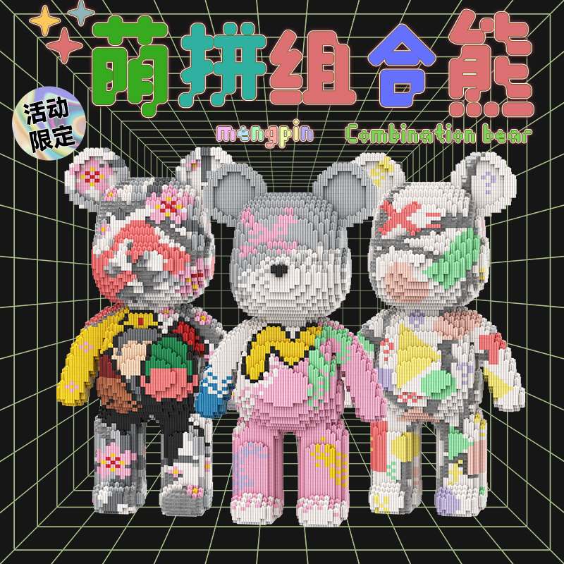 萌拼潮玩43厘米熊积木小颗粒拼装玩具3D立体拼图男女孩生日礼物