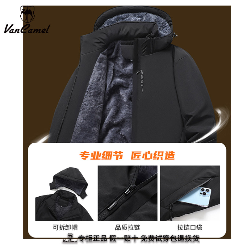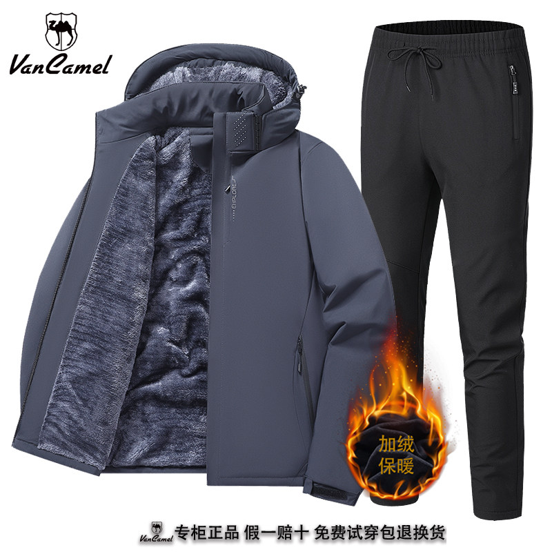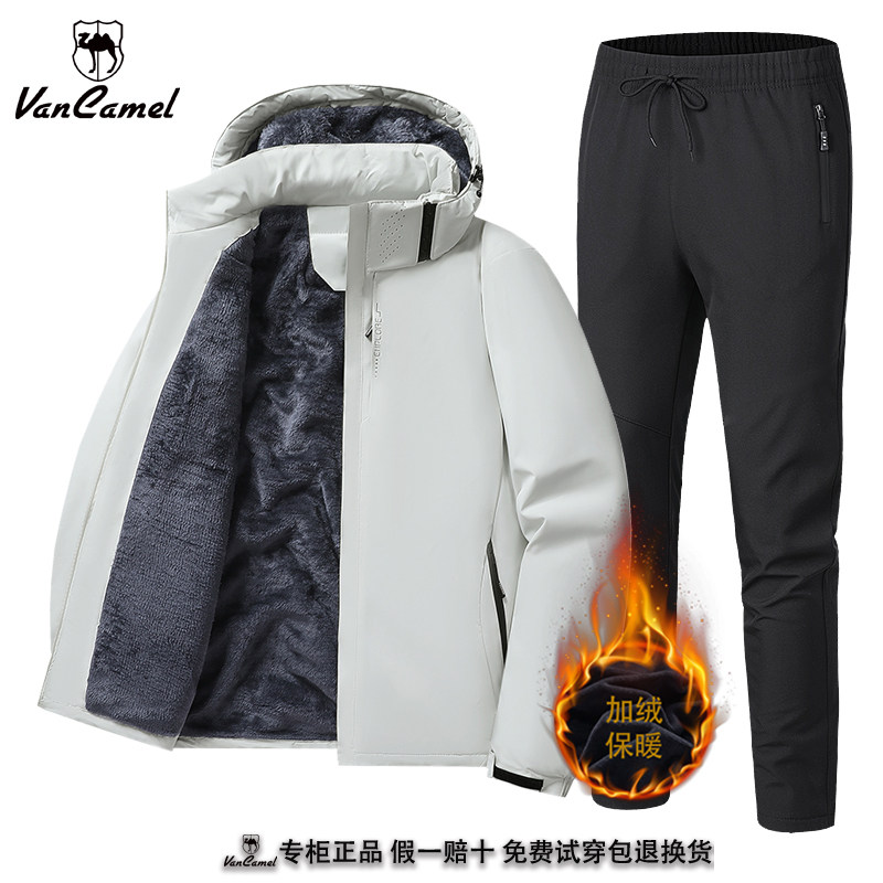 西域骆驼冬季男冲锋外套加绒加厚棉衣保暖防风防水套装衣裤两件套