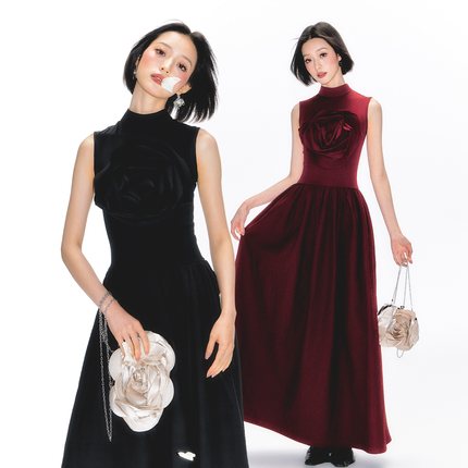 杨二大梦原创设计玫瑰背心裙长裙2025夏季新款裙子女无袖连衣裙