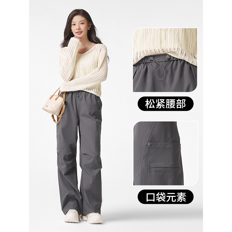 热风工装裤女2025年秋款休闲伞兵裤直筒宽松松紧腰户外舒适休闲裤