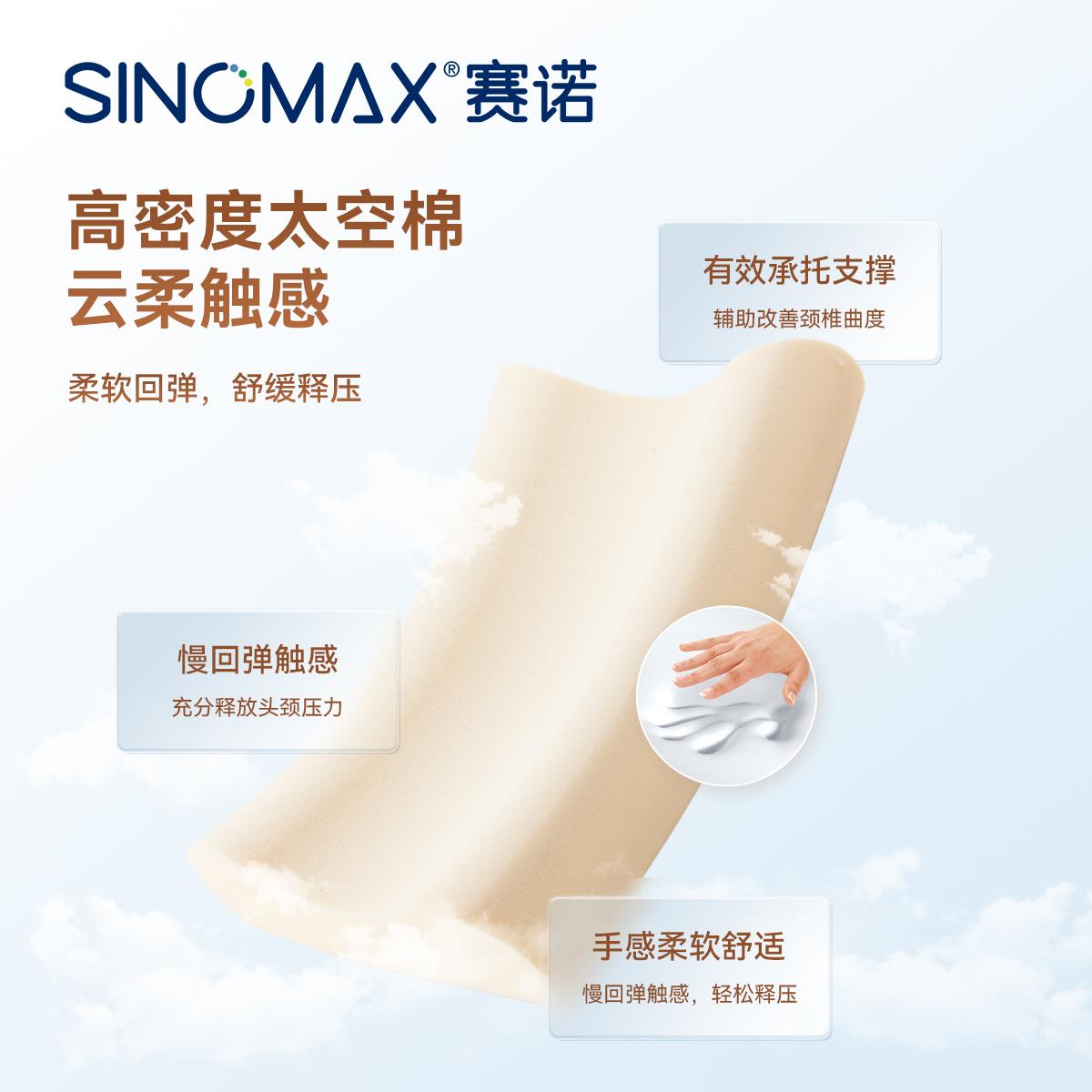 SINOMAX赛诺记忆枕头护颈枕慢回弹记忆棉颈椎保护枕低枕头天睿枕
