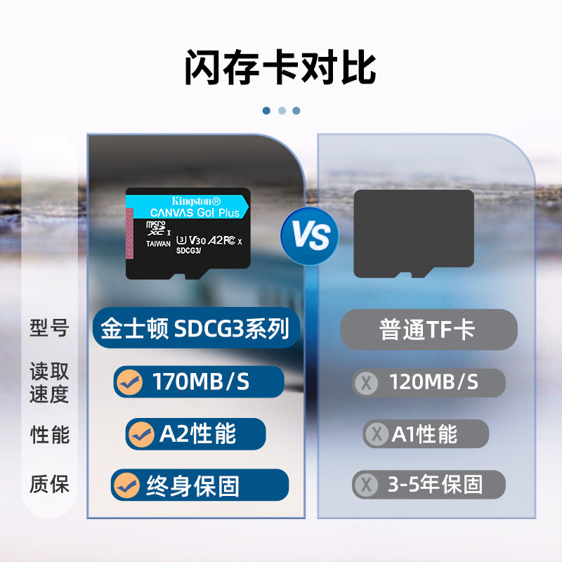 大疆Osmo ACTION6 内存卡金士顿 Canvas Go!Plus microSD 卡 128GB/256/512 pocket3/nano储存卡
