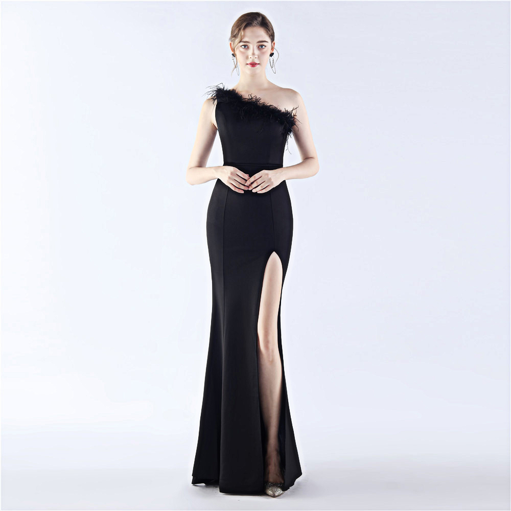 晚礼服裙女高贵高端气质轻奢女神范主持人年会晚会斜肩长款连衣裙