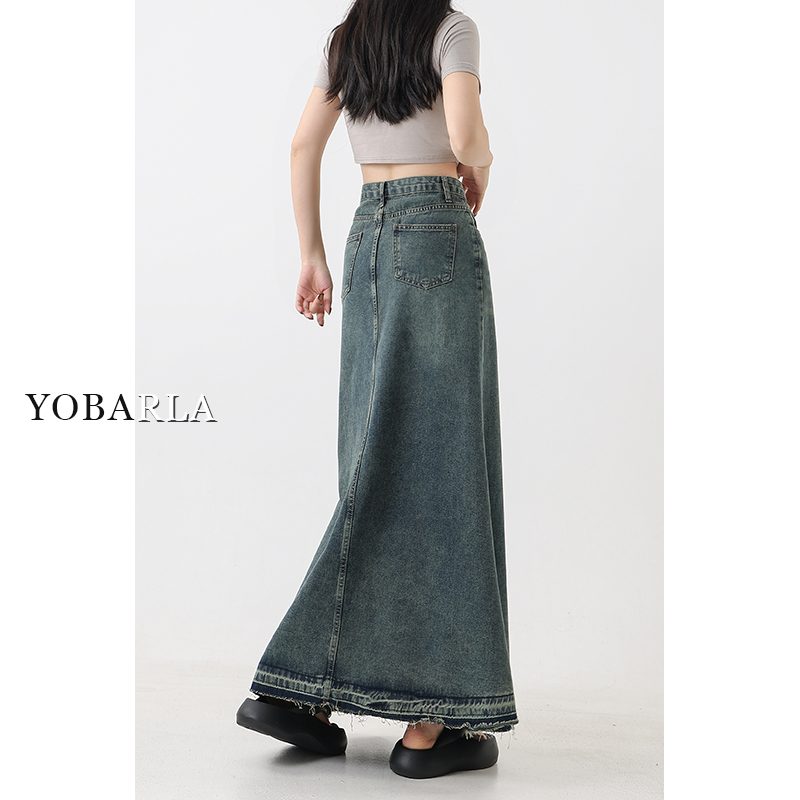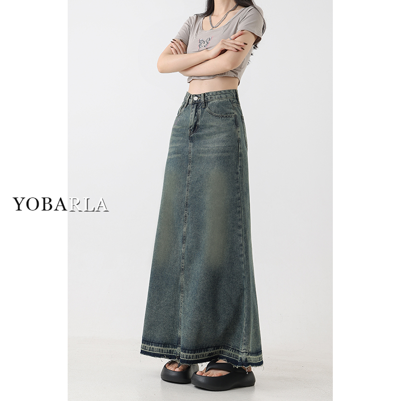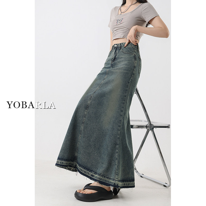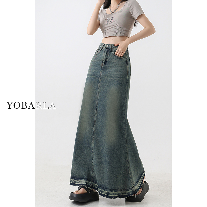 复古牛仔半身裙女高腰秋季大码显瘦胖mm梨形身材a字中长款鱼尾裙