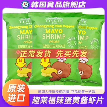 韩国进口趣莱福鲜虾片青阳辣椒蛋黄酱薯片膨化韩式零食休闲大礼包