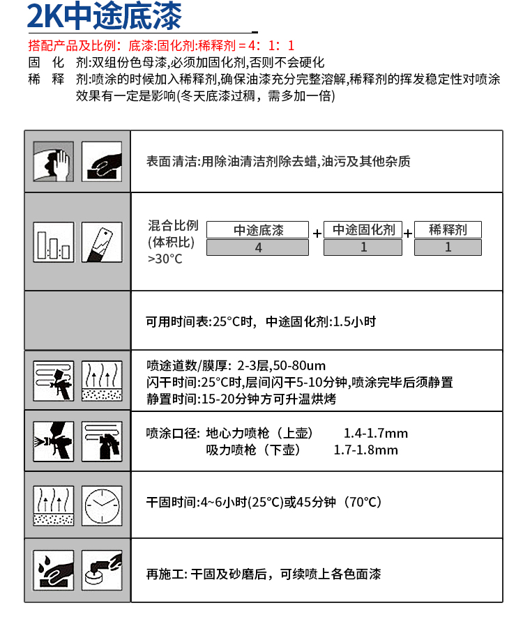 汽车漆2K双组份中途底漆固化剂套装中涂灰白底漆超快干修理厂专用