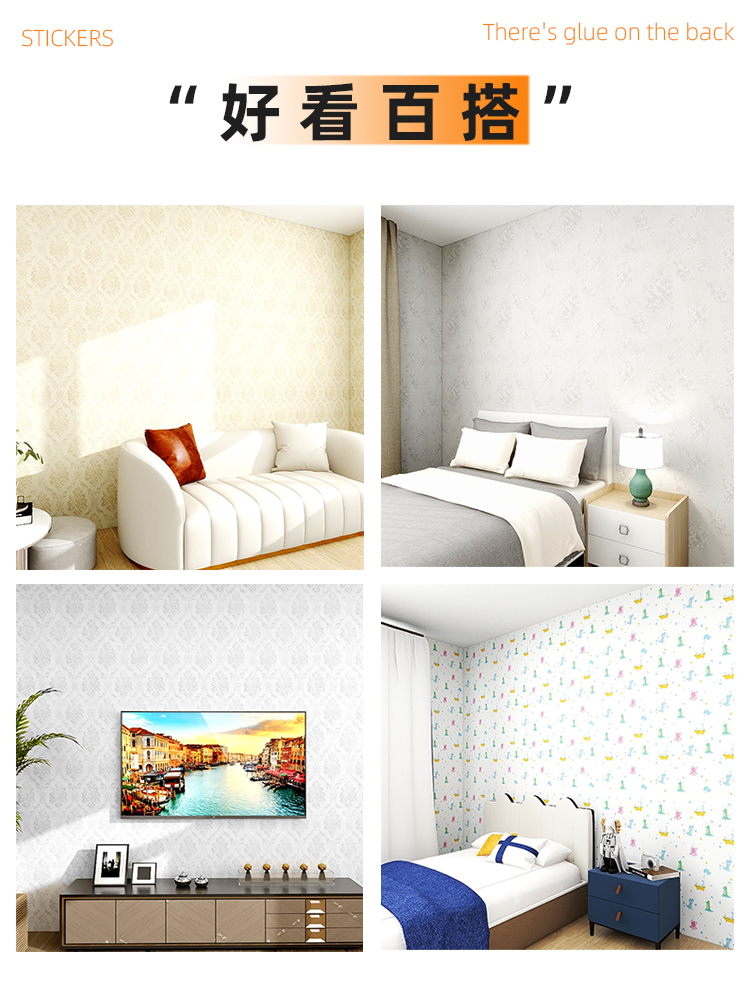 加厚欧式卧室墙贴客厅温馨背景墙贴纸宿舍防水翻新膜墙壁自粘壁纸