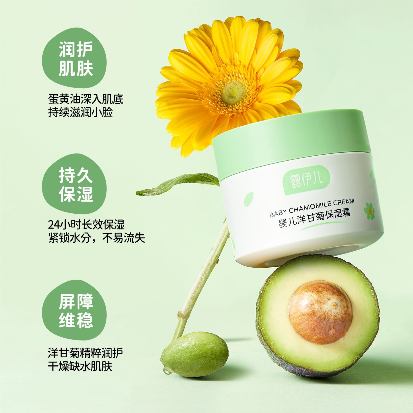 露伊儿洋甘菊高保湿霜四季保湿面霜婴幼儿补水保湿霜新生儿宝宝霜