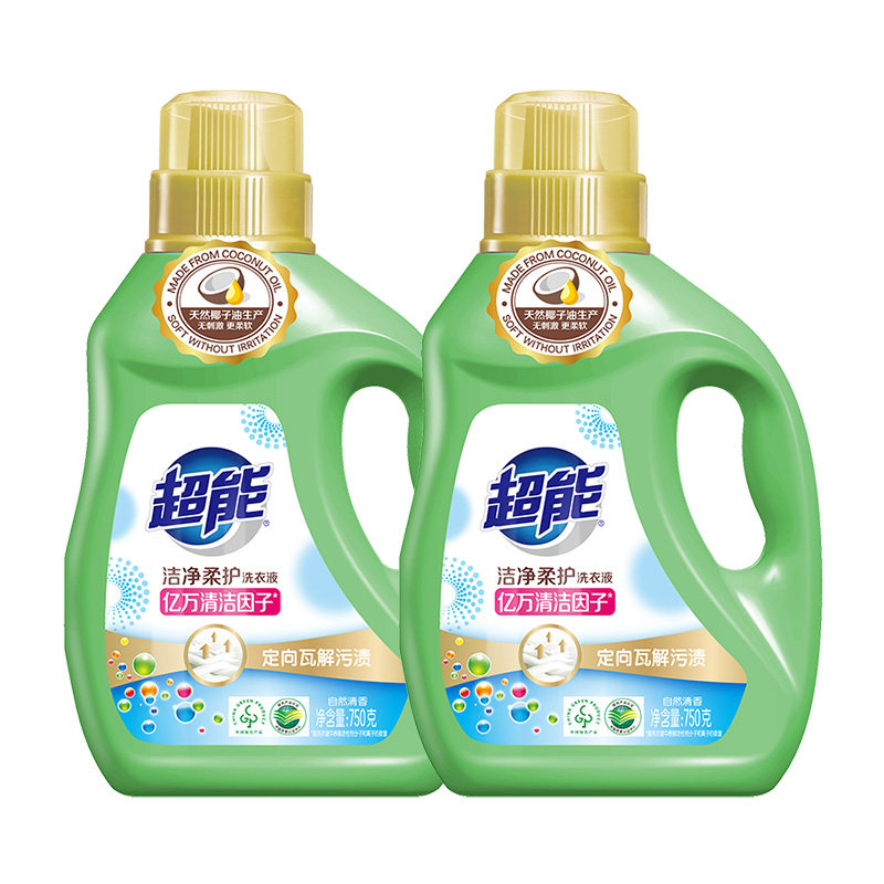 超能洁净柔护洗衣液750g瓶装家用实惠促销装深层洁净低泡易漂正品