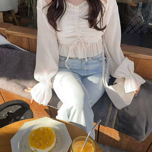 日单新款通勤百搭无扣纯色长袖衬衫+一字领纯色吊带女时尚两件套