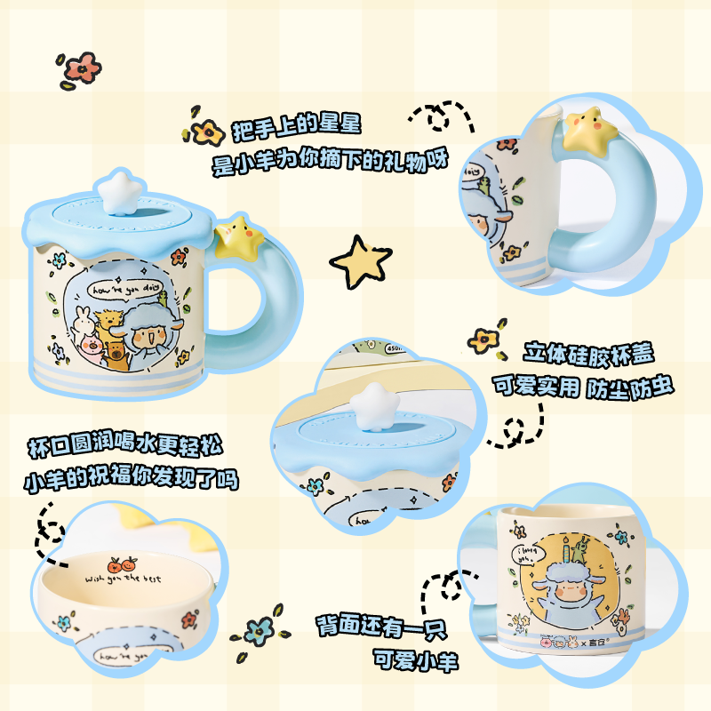 言仓星星小羊马克杯陶瓷居家可爱女生闺蜜情侣儿童生日礼物