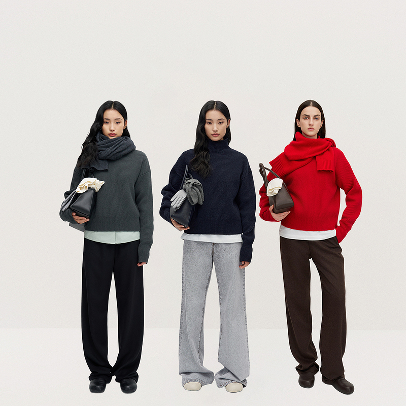 OCHIRLY欧时力 100%羊毛套头毛衣女烟管领保暖气质2024冬季新品