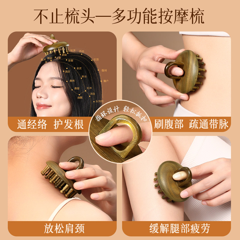 天然绿檀木按摩梳子头皮经络梳头牛角脱发头疗器防刷头部疏通神器