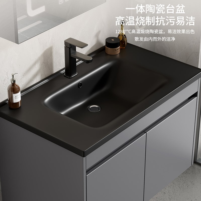 挂墙式太空铝浴室柜哑黑色陶瓷家用洗脸I盆小户型卫生间阳台洗手