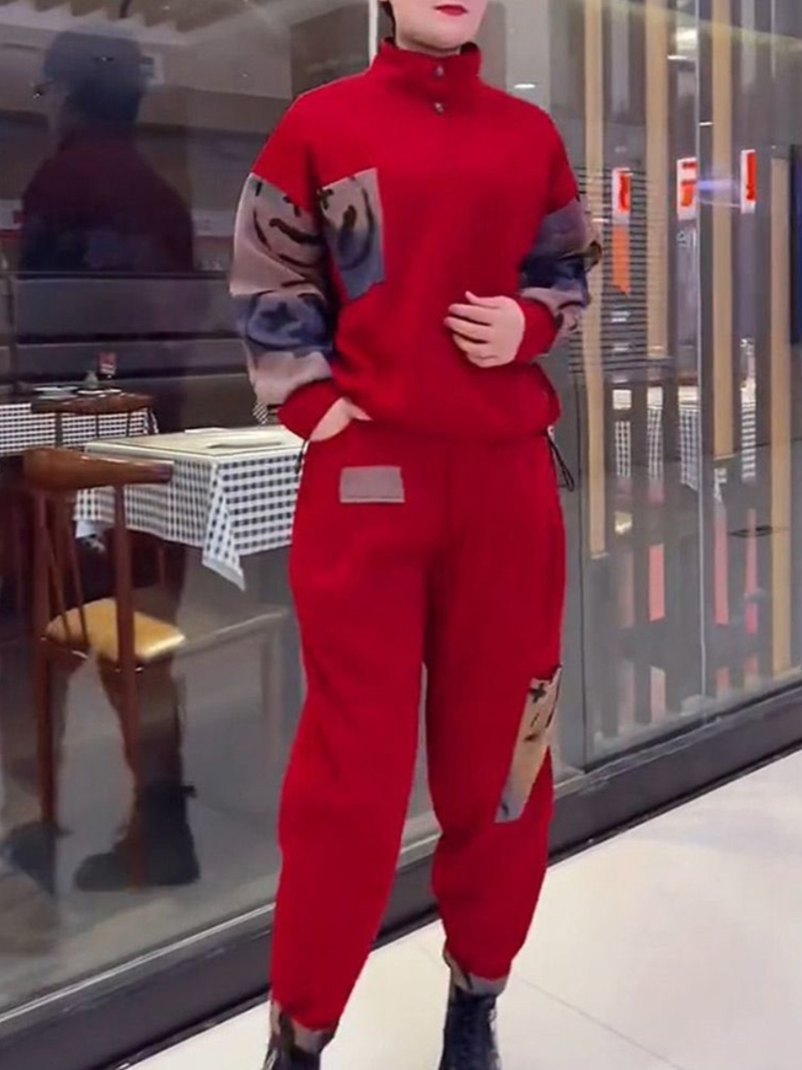 印花休闲运动套装女2025春季新款大码时尚显瘦哈伦裤上衣两件套潮
