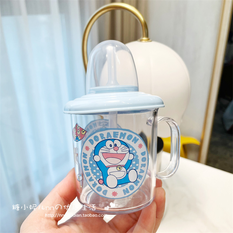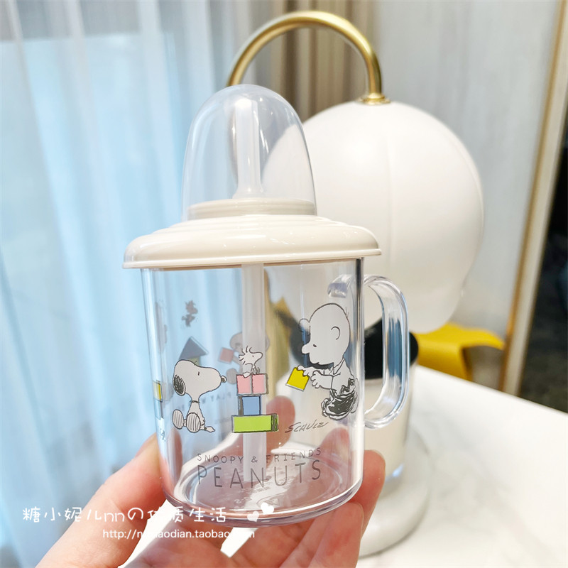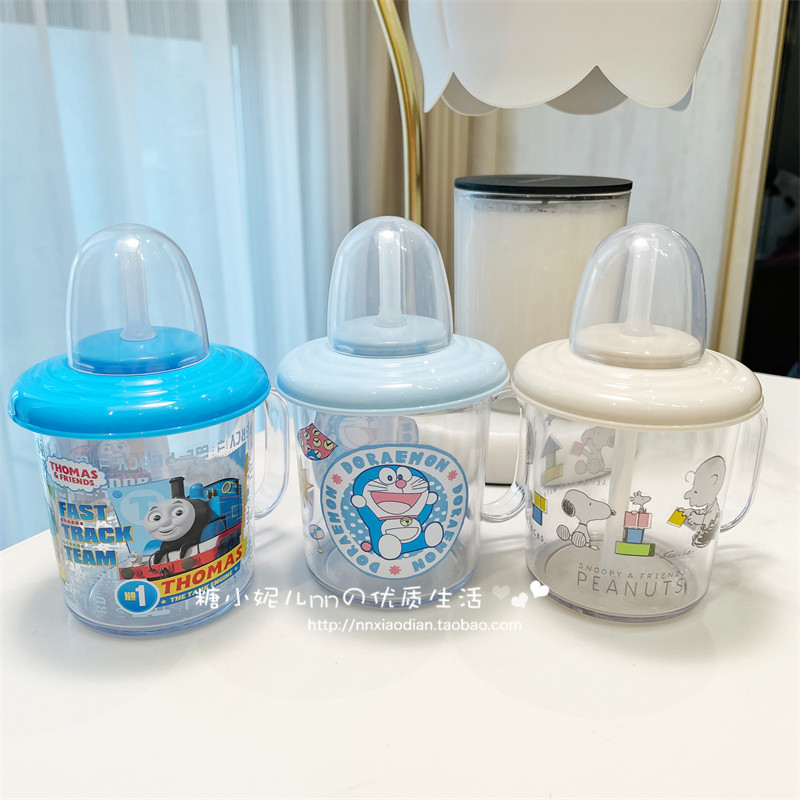 日本osk托马斯机器猫snoopy宝宝儿童吸管杯带手柄敞口直饮漱口杯