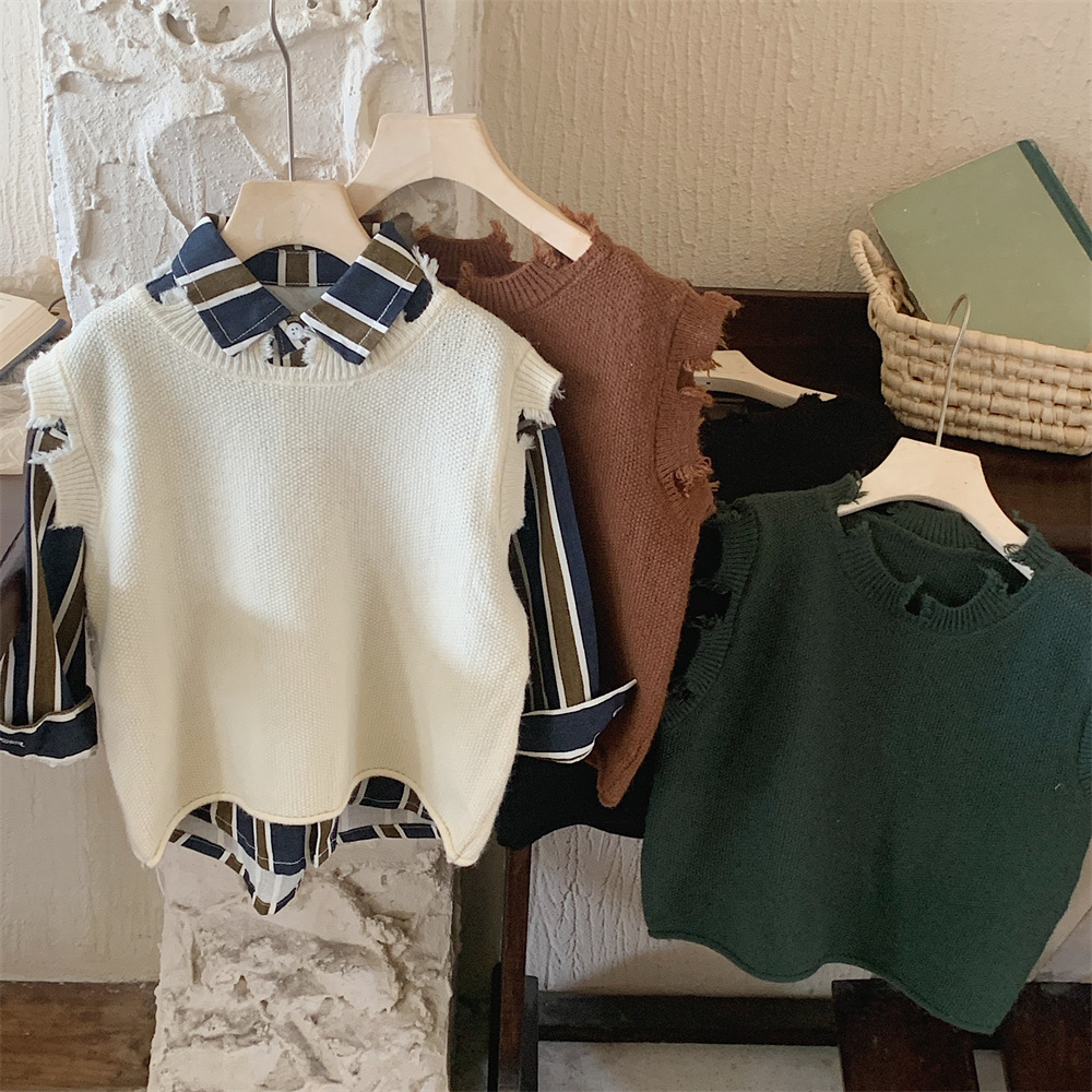 简潮儿童毛衣马甲2024春秋季新款韩版纯色洋气中小童上衣外穿背心
