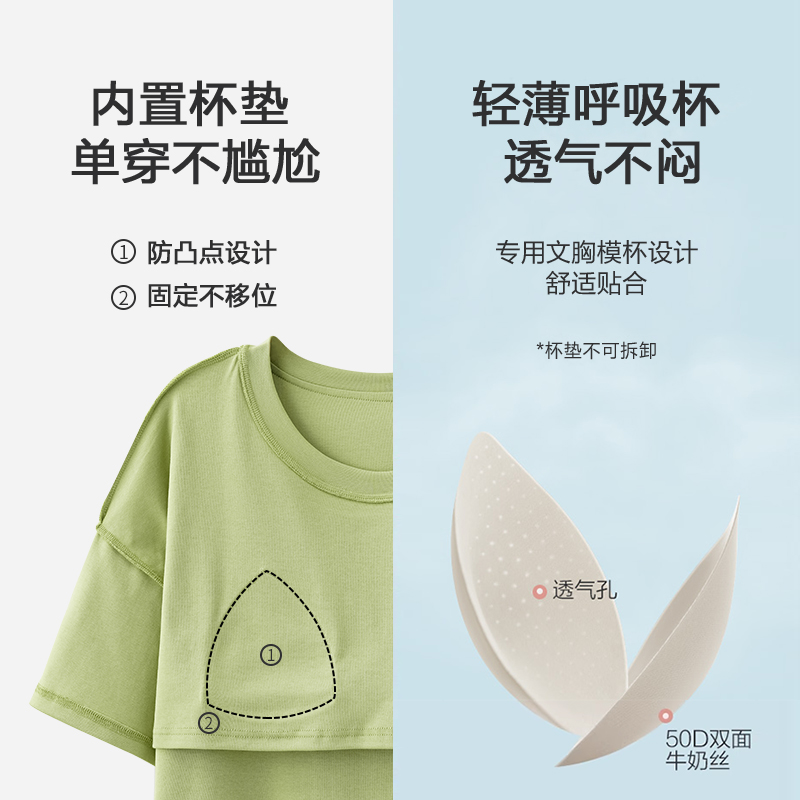 睡衣女士夏季天纯棉短袖短裤带胸垫一体简约休闲可外穿薄款家居服