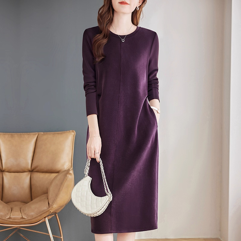 高档长袖连衣裙秋季新款洋气妈妈宽松女装大码胖mm显瘦中长款裙子