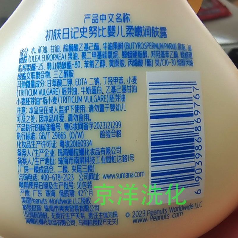 史努比婴儿营养润肤露0-3岁150ML优韵儿滋润营养保湿身体乳面霜