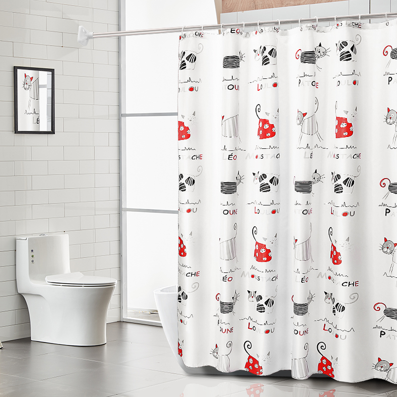 浴帘布隔断帘防水防霉加厚挂帘免打孔可伸缩浴帘杆淋浴杆浴室套装