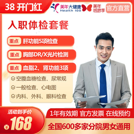 美年大健康 入职体检套餐 基础全国多城市通用 在线预约
