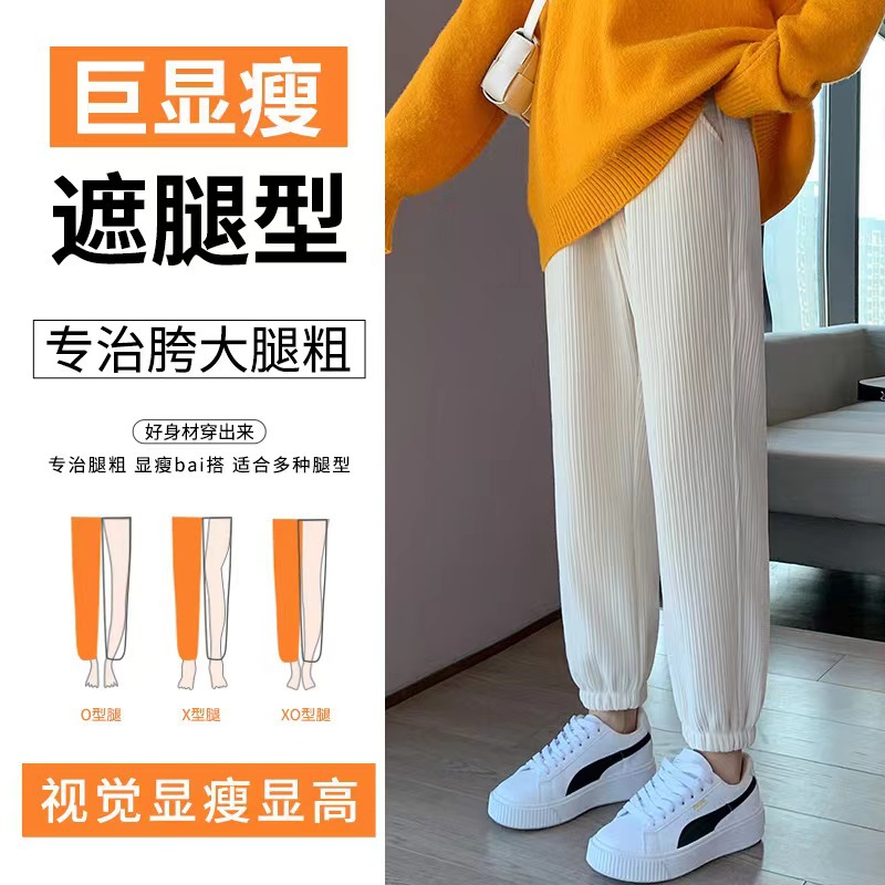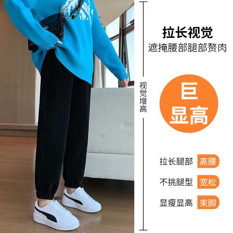 雪尼尔束脚裤腰垂感2025年新款秋冬季加绒灯芯绒休闲直筒裤子女