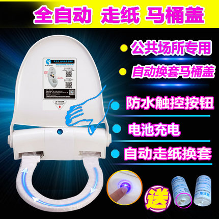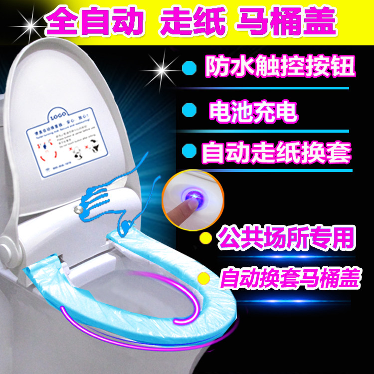 自动换套马桶盖一次性走纸换膜套公共厕所智能电动转转宝坐便盖