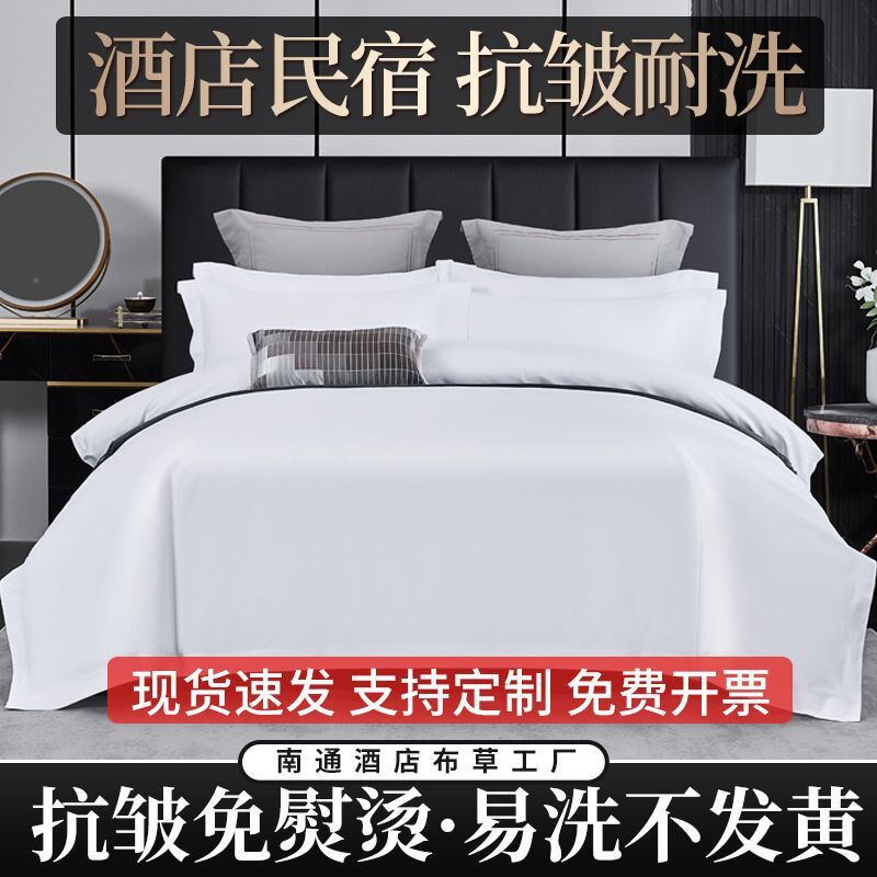 民宿酒店床上用品四件套纯白色布草床单被套褥三件套宾馆全七件套