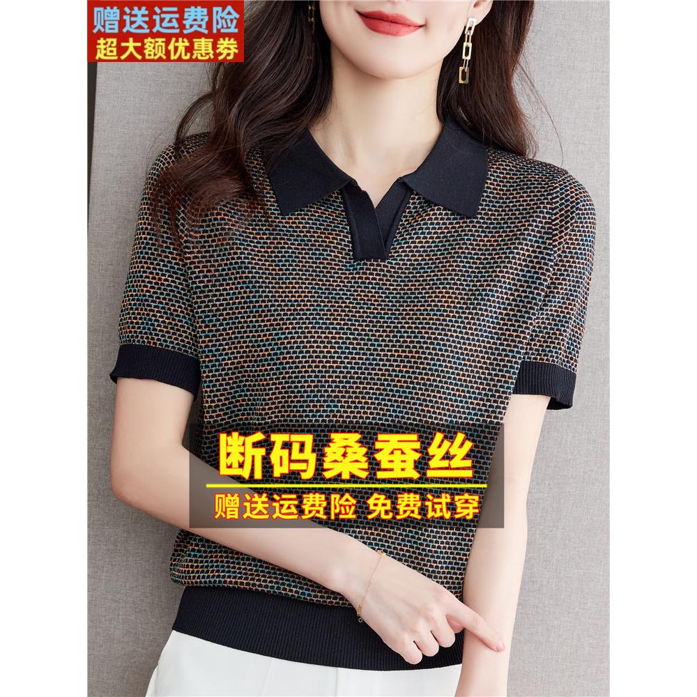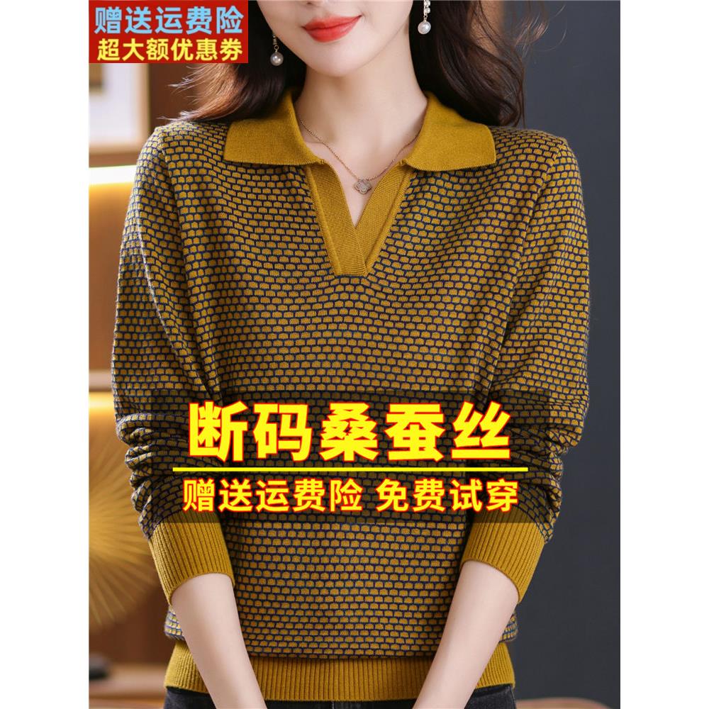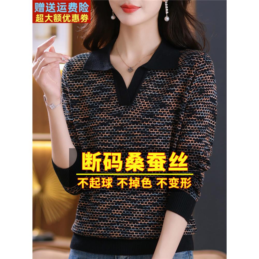 秋装新款短袖t恤女夏季桑蚕丝翻领妈妈长袖真丝上衣冰丝polo小衫