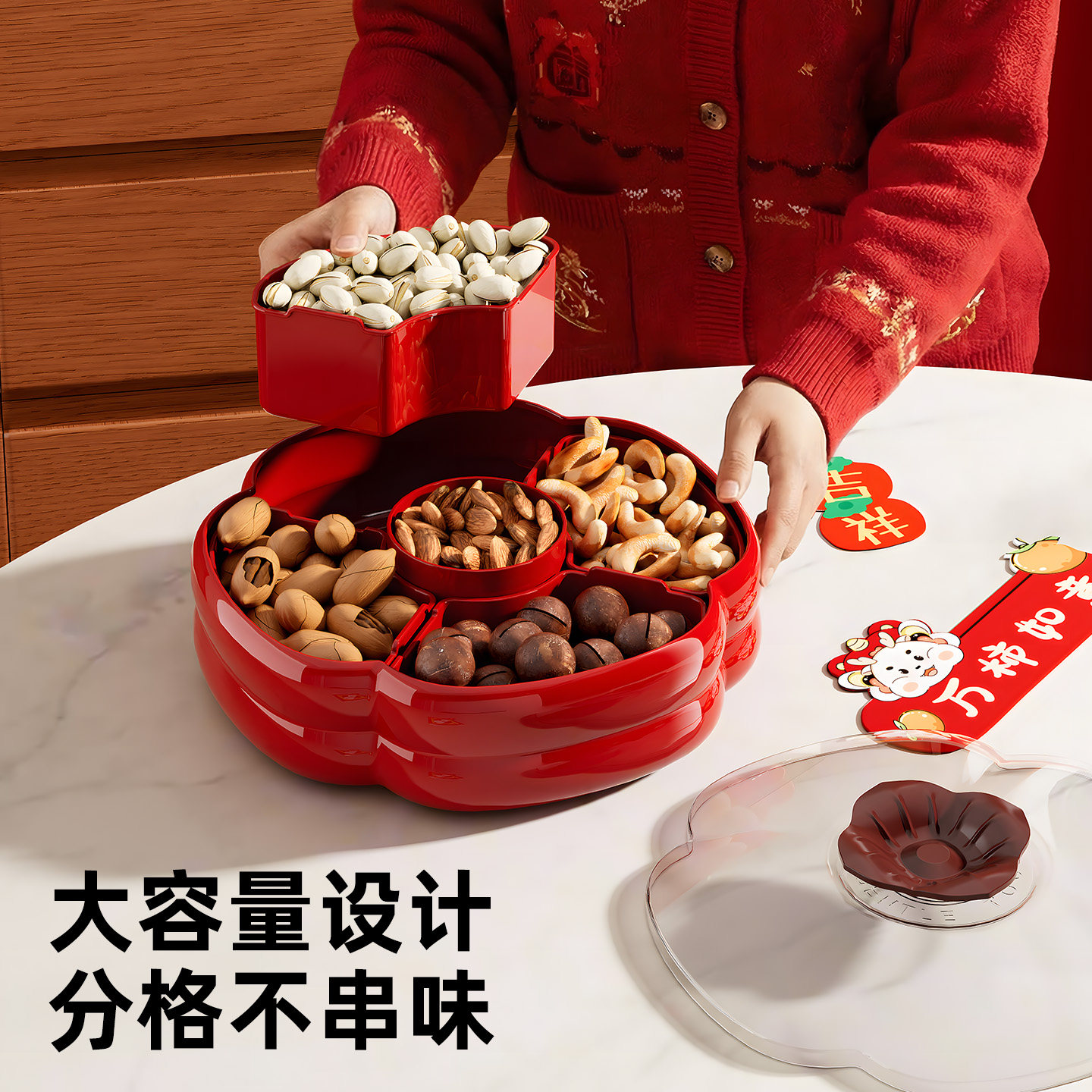 干果盘客厅茶几2026新款家用高颜值瓜子坚果糖果盒零食分格收纳盒