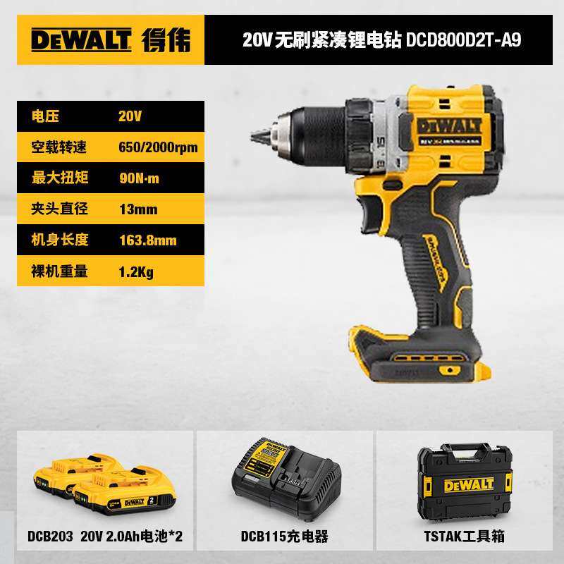 得伟 无刷电钻充电锂电冲击钻多功能钻充电手电钻DCD800/805