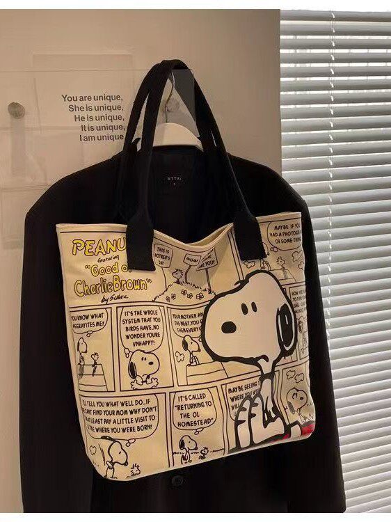 史努比帆布包女大容量包包2026新款潮卡通史努比手提袋百搭单肩