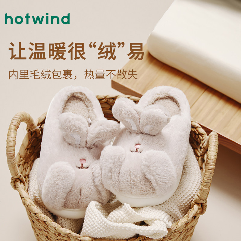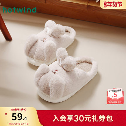 热风包头拖女24冬新款女士休闲可爱兔耳家居拖保暖舒适卡通包头拖