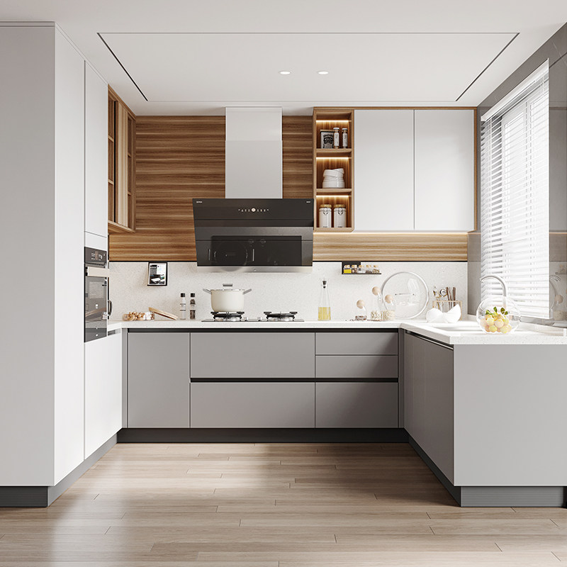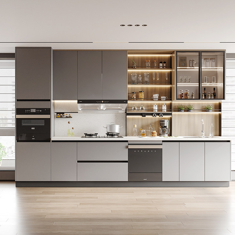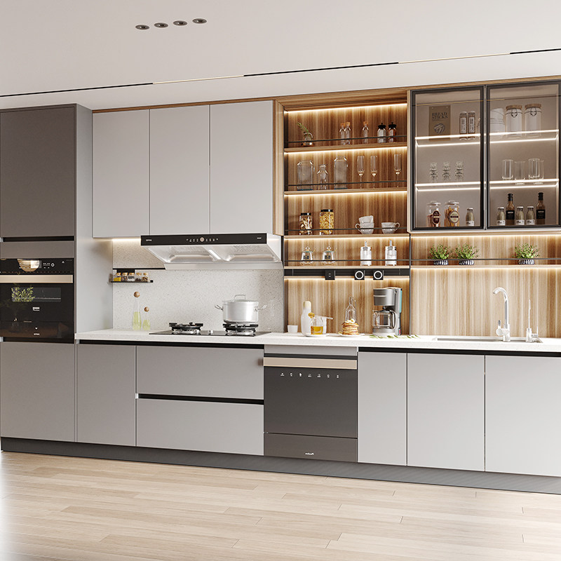 欧派橱柜定制厨房整体厨柜橱柜一体石英石台面开放式厨房灶台柜子