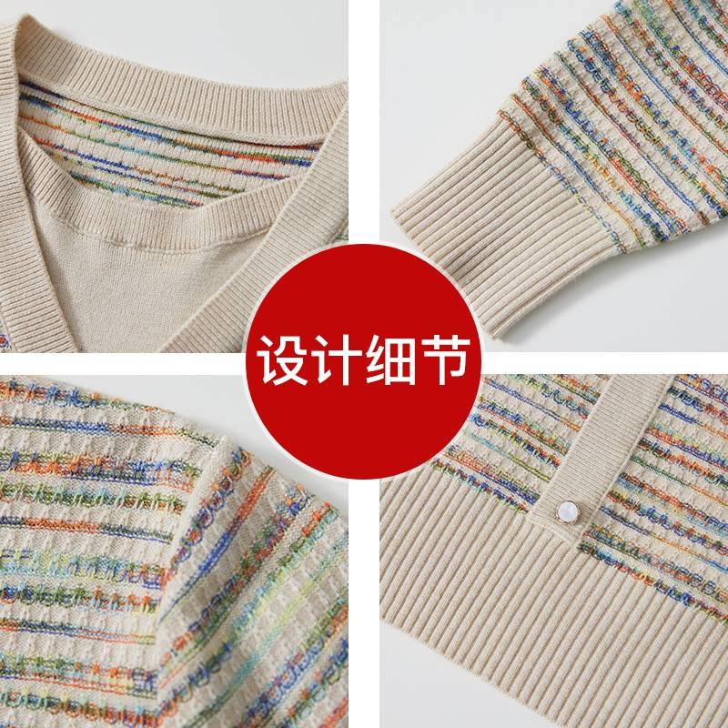 妈妈春秋气质针织上衣中年女装春装四五十岁中老年洋气条纹打底衫