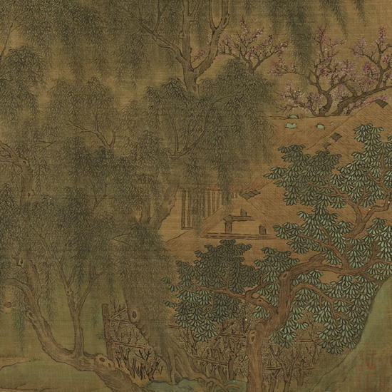 刘松年春社图山水画人物办公室挂画国画装饰画客厅横版字画卷轴画