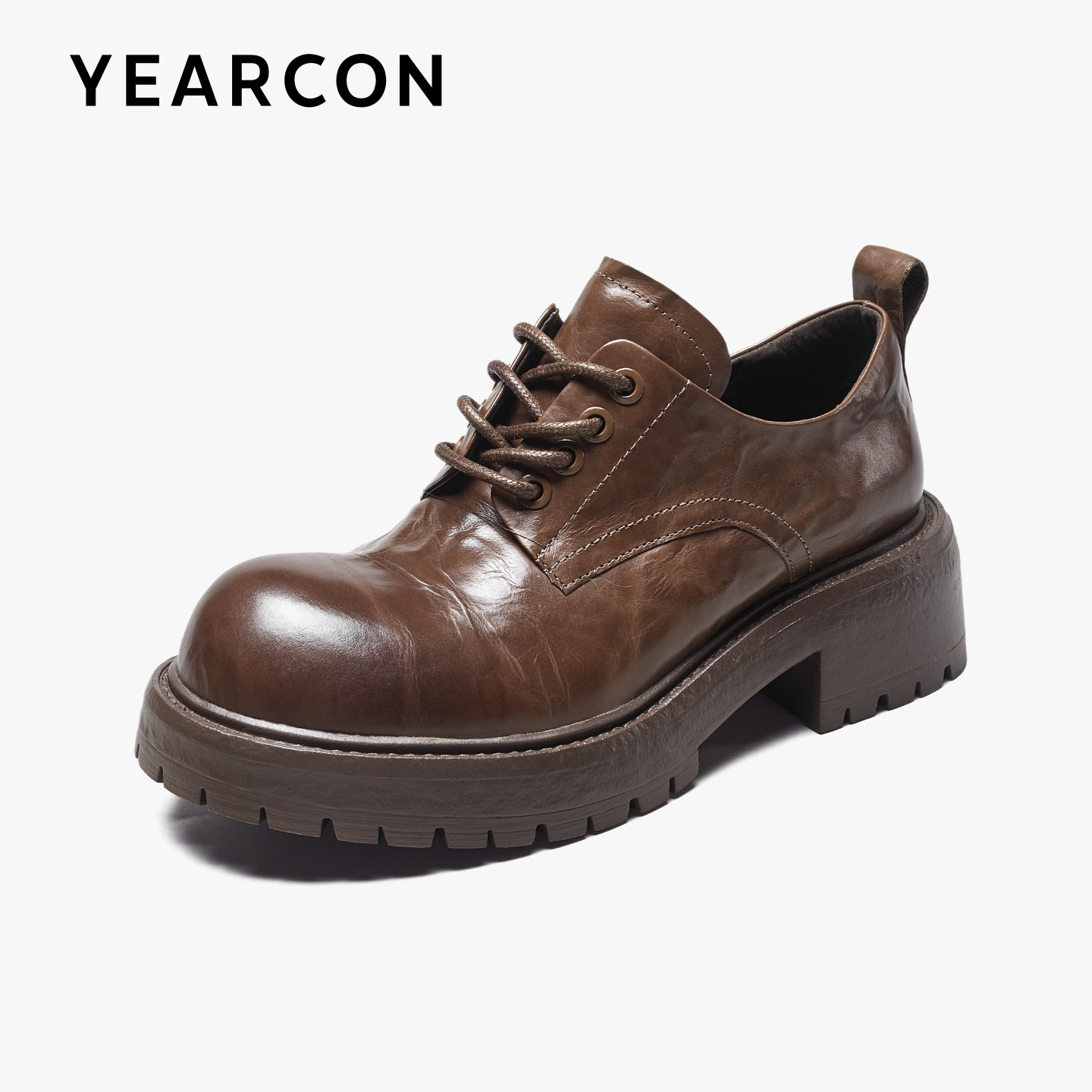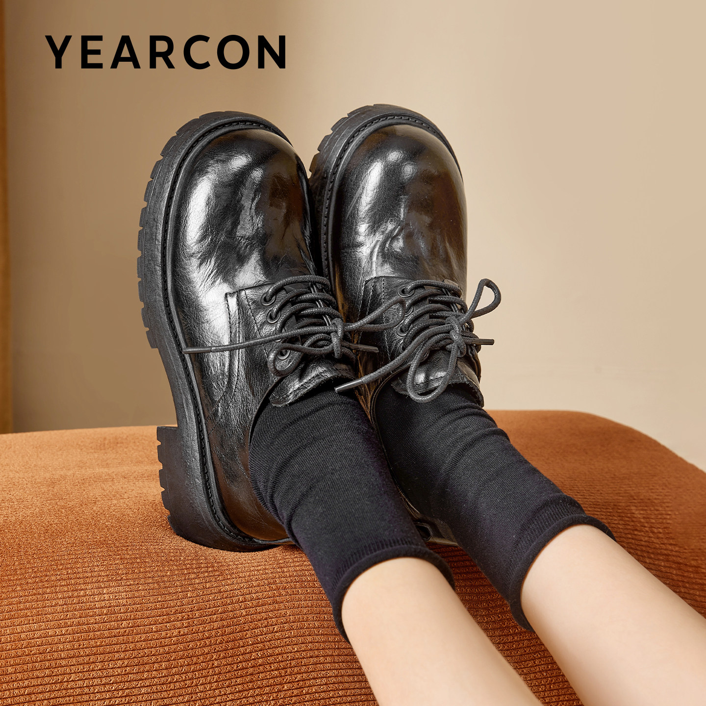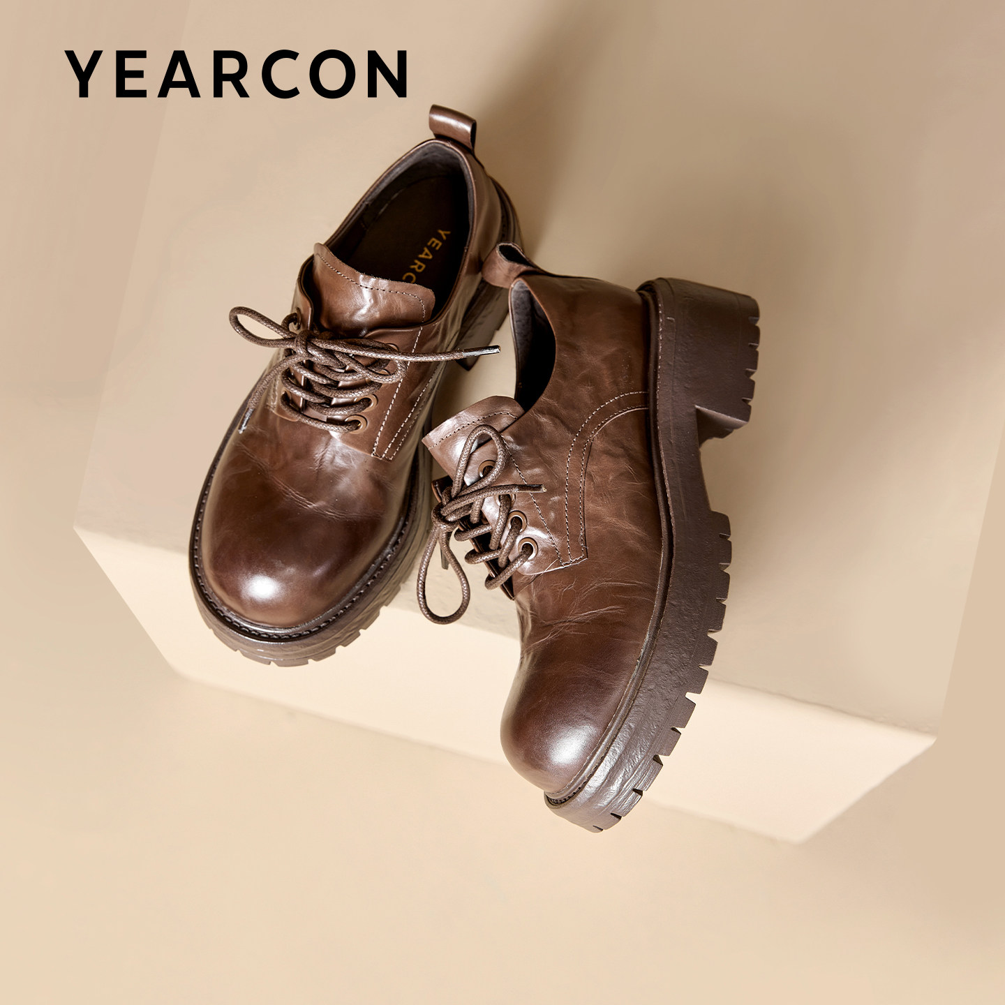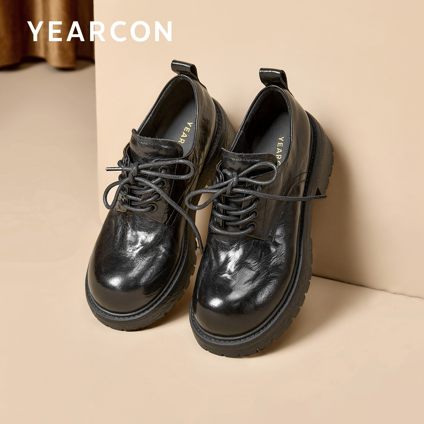 意尔康真皮单鞋女2026春款英伦风系带商务通勤黑色小皮鞋乐福鞋