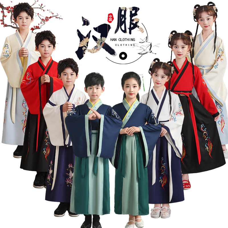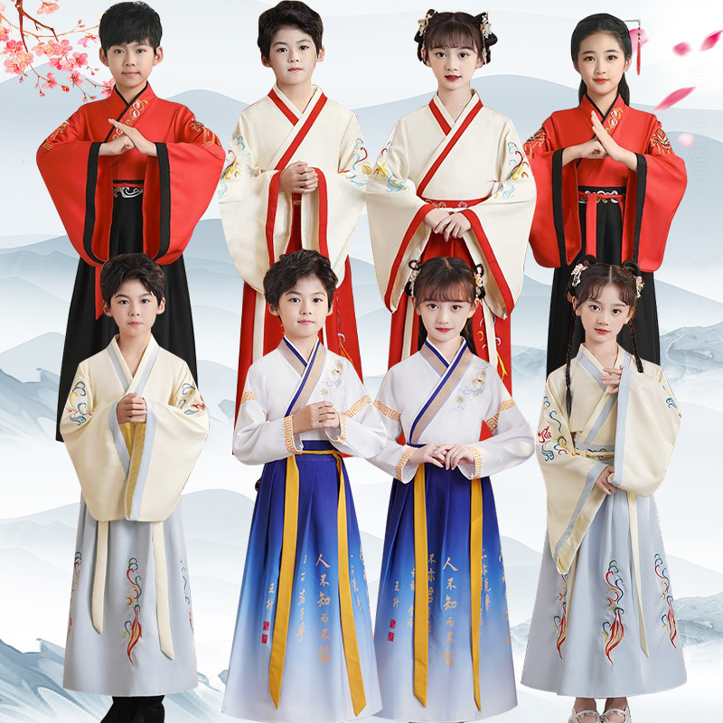 儿童古装汉服国学服男童开笔礼小学生中国风三字经弟子规演出服装