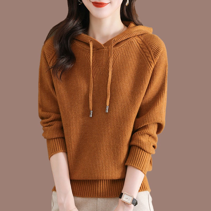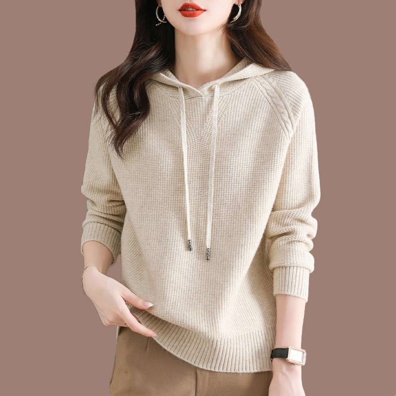 羊绒衫女士秋冬新款大码连帽羊毛卫衣针织宽松百搭打底衫带帽毛衣