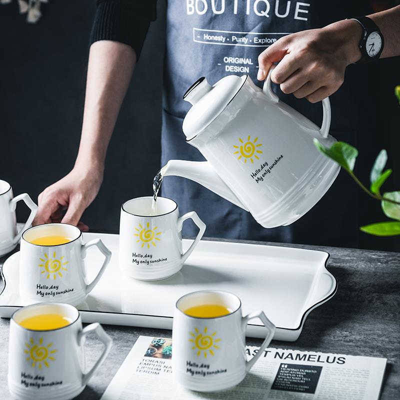 陶瓷喝水杯套装家用 创意客厅简约北欧水具杯具杯子6祇套装带托