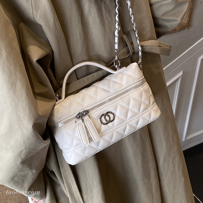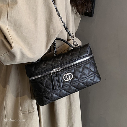 小众设计黑色盒子包女2025新款小香风菱格链条包手提小包包25bag